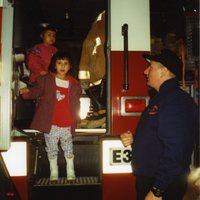 Tigard-Tualatin Head Start students in the back of a Tualatin Valley Fire and Rescue firetruck. The Tigard-Tualatin Head Start program is a part of the Community Action Organization and provides educational services and support to children from low income families in the Tigard-Tualatin school district in Washington County, Oregon. This is from the records of the Washington County Community Action Organization, an anti poverty nonprofit.