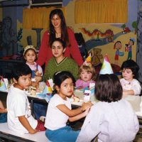 Tigard-Tualatin Head Start students eating cake with two of their teachers. The Tigard-Tualatin Head Start program is a part of the Community Action Organization and provides educational services and support to children from low income families in the Tigard-Tualatin school district in Washington County, Oregon. This is from the records of the Washington County Community Action Organization, an anti poverty nonprofit.