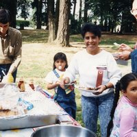 Washington County Community Action's energy and emergency services coordinator Chavela Mendoza and staff member John Harrison at Washington County Community Action's 25 year reunion picnic. This is from the records of the Washington County Community Action Organization, an anti poverty non profit.