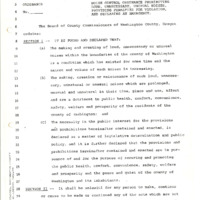 The noise ordinance for Washington County, Oregon. Stapled to the ordinance is a meeting notice for the Board of Commissioners of Washington County. The notice lists the plans for the meeting, which include a public hearing on the Community Action Program. This is from a binder compiled by Birgetta Nixon, who was active in the anti-poverty organization Community Action in Oregon.