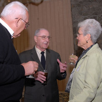 - Governor Victor Atiyeh chatting with two unidentified people at a reunion for his staff. This is one of a set of photographs taken by Gerry Lewin, a photographer for the Salem Statesman Journal.