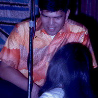 Pacific University students Don Aina (Class of 1967) and Millie Ah Ching at one of the university's annual Lu'aus, possibly in 1971 or 1972. Millie Ah Ching is wearing a white dress that was usually worn by the symbolic "Queen" of the Luau.