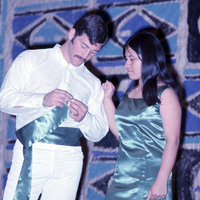 Pacific University students Jay Butz (Class of 1973) and Juanita Chang (Class of 1972) performing at the university's annual Lu'au, probably in 1971. They appear to be dressed as attendants of the "Royal Court" of the event.