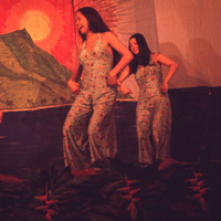 Pacific University students in jumpsuits, performing a dance on stage at the university's annual Lu'au in 1975. The photographer, Peg Osland, was on the staff of Pacific's publicity department.