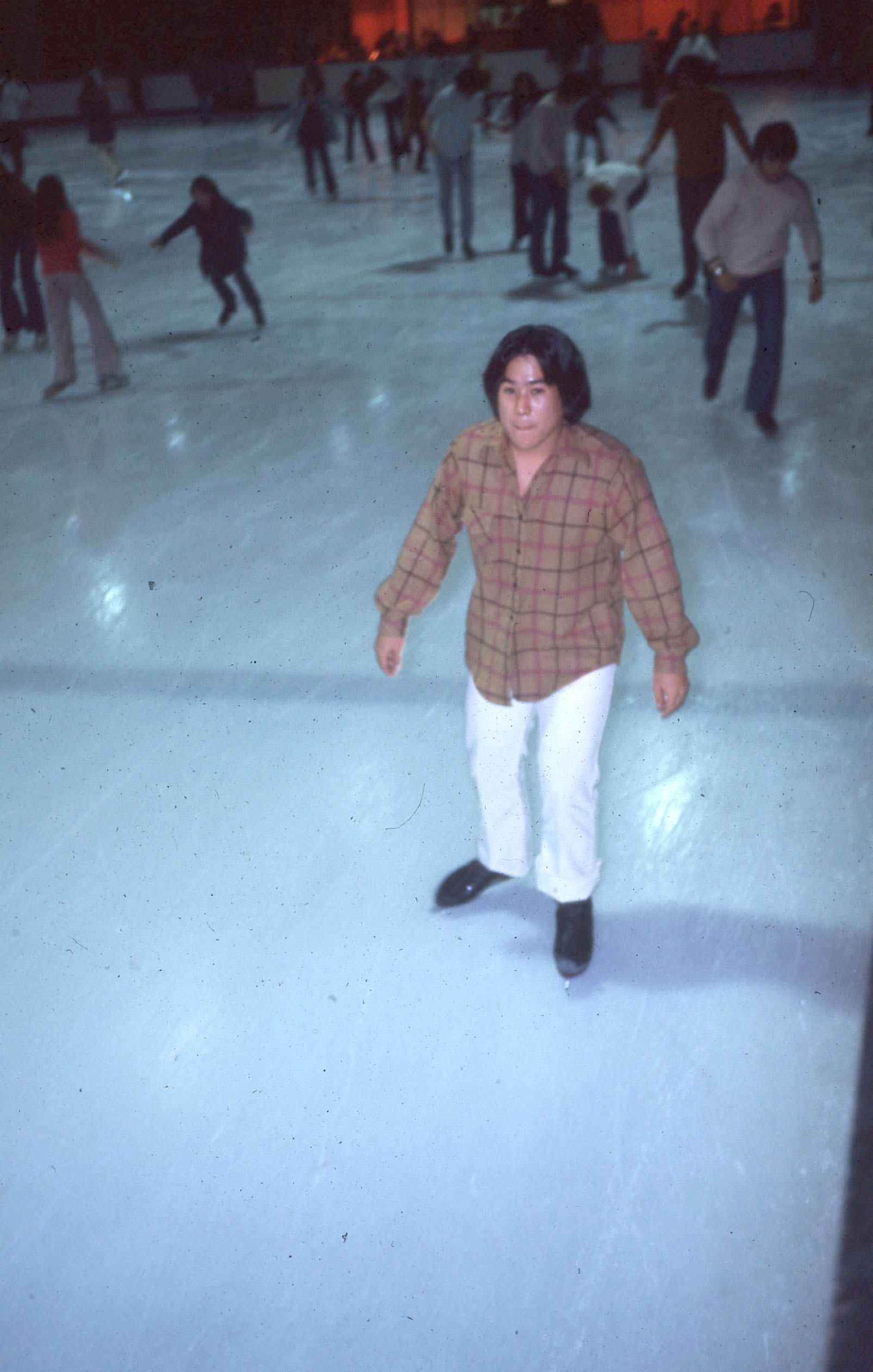 - Pacific University student Leslie Nakagawa ice skating in December, 1971. This image may have been taken during a Haumana O Hawai'i (Hawaiian Club) holiday event.