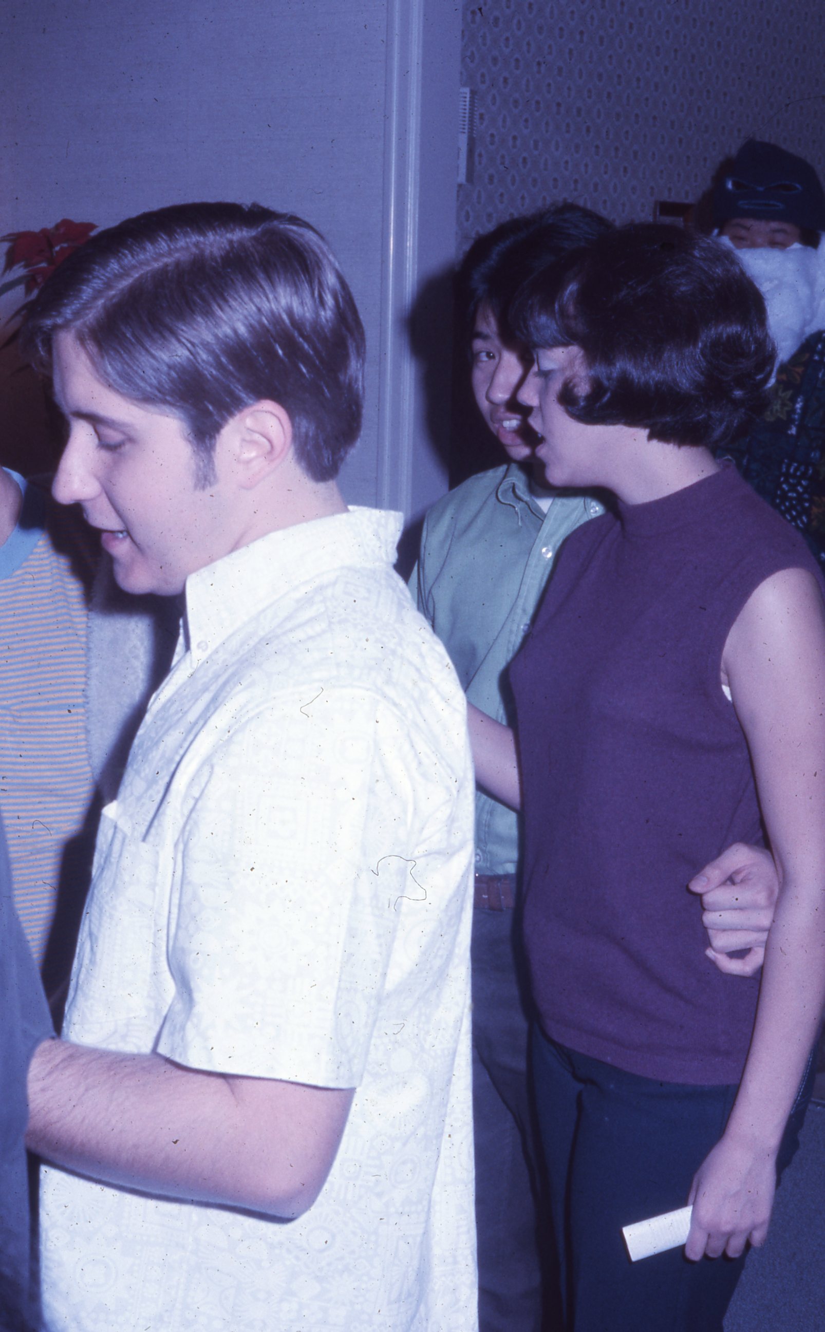 - A group of Pacific University students at an indoor gathering in 1967. One student in the background appears to be wearing a large, fake white beard. This may have been taken at a Christmas holiday event.