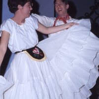 - Two Pacific University students dressed in white costumes, most likely for a theatre performance. The slide was printed in November, 1968.