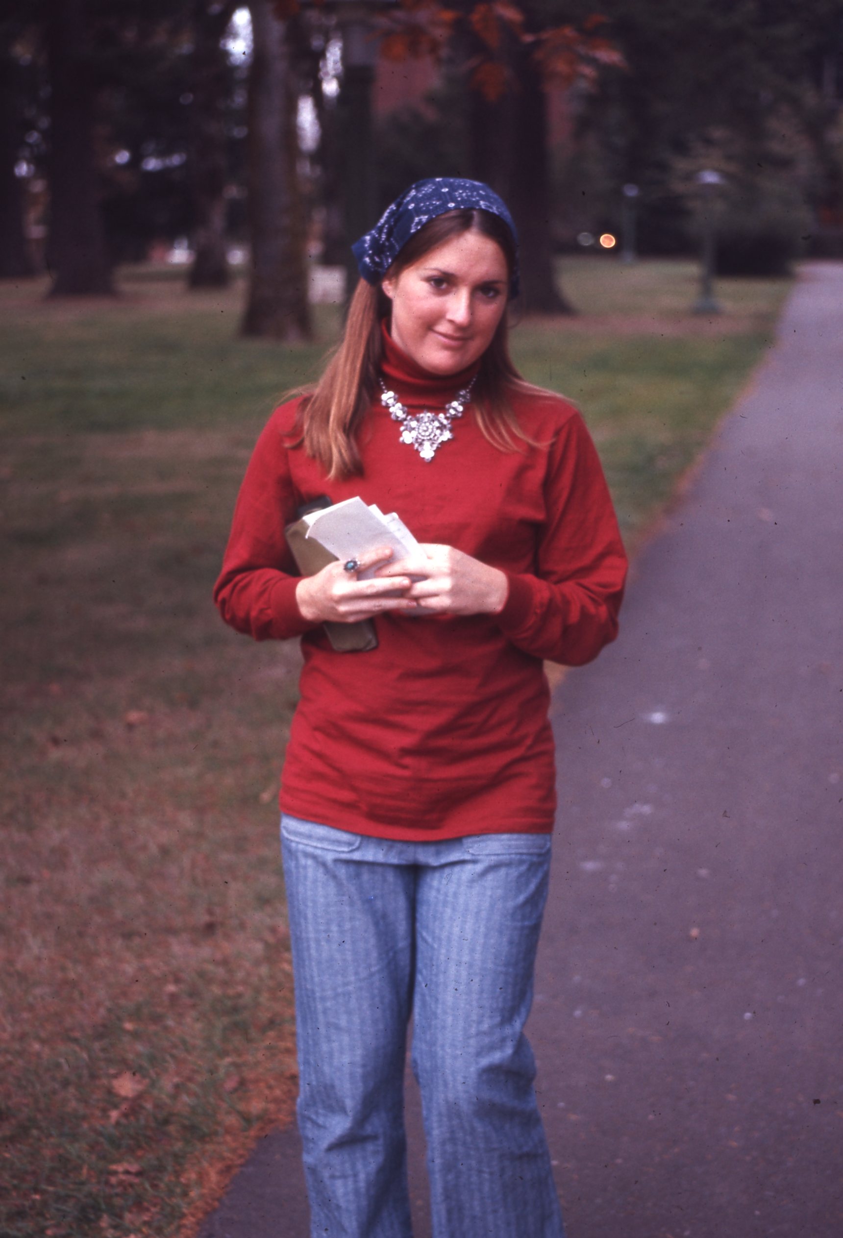 - Pacific University student Alex Avery (Class of 1973), walking on campus in the fall of 1970.