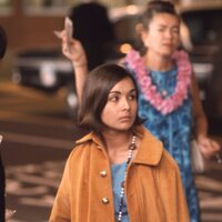 A student and several others standing outdoors, apparently waiting to enter Pacific University's annual Lu'au circa 1970.