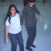- Pacific University student Gwen Kaauwai (Class of 1975) with another student at an ice skating rink. This appears to have been taken during an outing of Haumana O Hawai'i (Hawaiian Students Club) in December 1971. It was most likely taken at the Beaverton Ice Center.