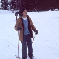 - A Pacific University student wearing a brown coat, on a ski trip to Mount Hood in February, 1972. This appears to have been part of an annual trip organized by Pacific's Haumana O Hawai'i (Hawaiian Club), led by Professor Fred Scheller.