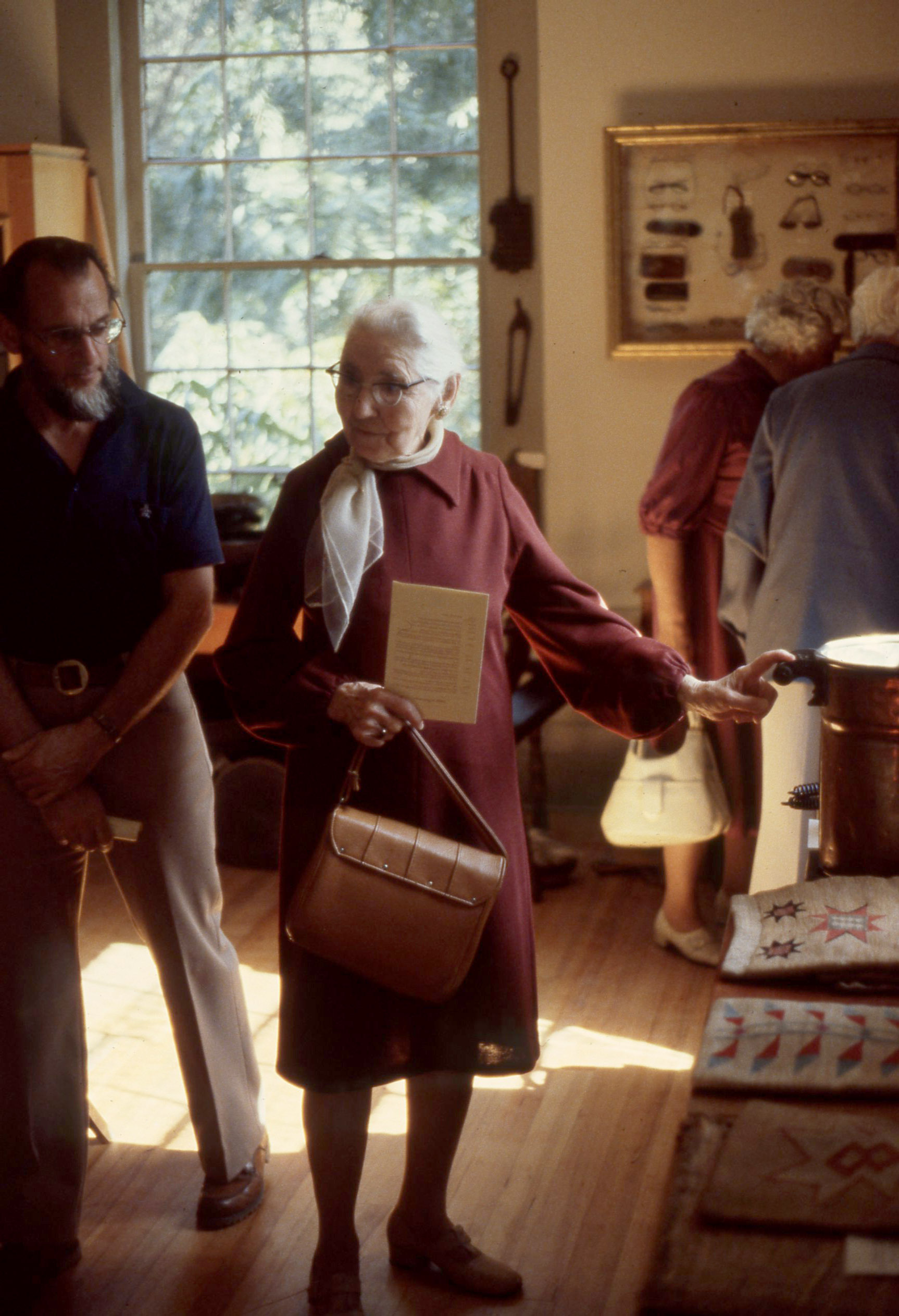Mildred Scobee Reeher visiting a display in Old College Hall