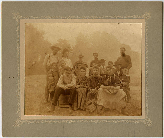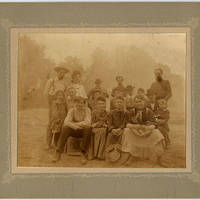 An unidentified group of young men and women pose for a photo. Originally this photo was found in folder marked Charles Walker Family so there may be some connection.