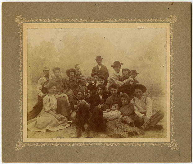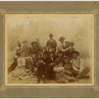 An unidentified group of young men and women pose for an informal photo. Originally this photo was found in folder marked Charles Walker Family so there may be some connection.