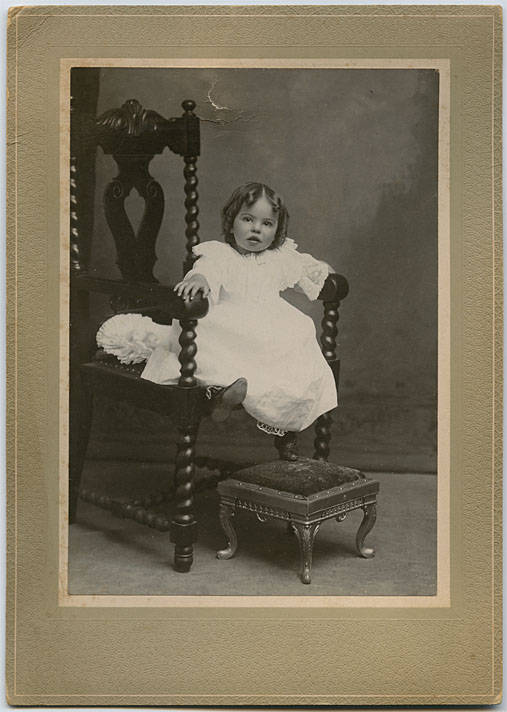 A portrait of an unidentified young child. The photo was originally found among Walker Family material so it is likely there is a connection.