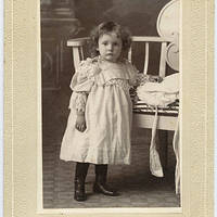 A portrait of an unidentified child posed next to a chair. The photo was originally found with Walker Family material and it is likely there is a connection.