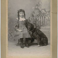 A portrait of an unidentified girl posed with a dog. Originally this photo was found with Walker Family material and there may be some connection.