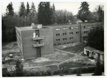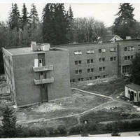 Aerial view of the north side of Walter Hall during its construction.