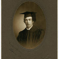 A graduation portrait of student Harry P. Humphreys in cap and gown.