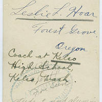 [back] Leslie L. Hoar. Forest Grove, Oregon. Coach at Kelso High School, Kelso, Wash.