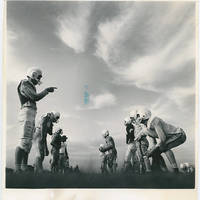 Face-off during football practice scrimmage