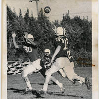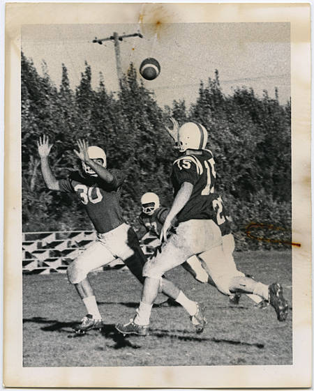 Pacific football player about to make catch