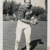 Bob Foord Wendel, a Pacific University football player, poses with a football. He graduated in 1962.