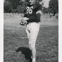 Bill Hughes, a Pacific University senior and football player, poses with a football.