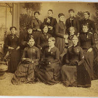 A photograph of thirteen women of the Women's Relief Corps. Some of the women are wearing medals.