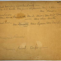 [Back] Back Row - from right hand side - Mrs. J. L. Smith, Mrs. James Stephenson, Mrs. J. L. Ellis ---- Mrs. Venen - Second row - Miss Anna Fairchilds, Mrs. D. Miller, Mrs. Will Chandler ---- Mrs. Elias Smith Front Row - Mrs. Doughty, Mrs. Lysons, Mrs. David Keene [Below the list of names pictured] Margaret Hinman Women's Relief Corps