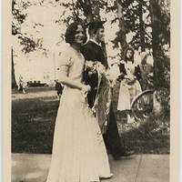 The 1931 May Day Queen, Florence Gross is walked to the throne to be crowned. She graduated from Pacific University the same year.