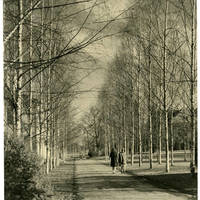 Students walking down Birch Walk