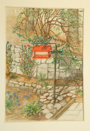 A photograph of the west entrance of Marsh Hall. Marsh Hall served as the university's chapel, recitation rooms, office and rooms for the literary societies and the Christian Associations. This picture appears in an album that was compiled by Greta McIntyre Sheeley, a 1920 Pacific University graduate.