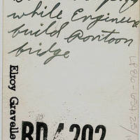 [front][pen] Me --> Elroy. Romig. [back][pen] Band sleeping while engineers build pontoon bridge. [stamped] Elroy Gravelle