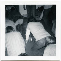A group of Alpha Zetas in a line on all fours.