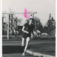 Don [last name unknown] practices running laps. Further information previously written on photo but ink has run and some of it is unclear.