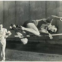 - An unidentified male student high jumping.