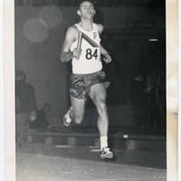An unknown male student running a relay. He is wearing a jersey with the number 84 on it.