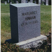 The gravesite and tombstone of Margaret Hinman, 1871-1961, class of 1891.