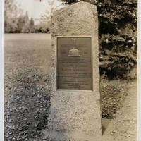 From front of the photo: College Hall, erected 1850. The oldest building in continues use for educational purposes west of the Rocky Mountains. Tualatin Academy now Pacific University. Here were educated men and women who have won recognition throughout the world in all the learned professions. Placed by Multnomah Chapter Daughters of the American Revolution, May 12, 1939. From back of photo: Memorial Plaque. Marker attache to Old College Hall-