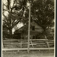 Photo of the cabin of Reverend Harvey Clark, taken in 1891. He was one of the founders of Pacific University, and died in Forest Grove in 1858. The cabin stood near what is now the intersection of 15th Avenue and Elm Street in Forest Grove.