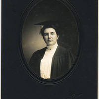 A portrait of Esther Silverman in her graduation robes. She graduated from Pacific University in 1908, and she and her classmates installed the Spirit Bench on campus.