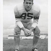 Gail Printz, a Pacific University sophomore and footballer, poses in a defensive stance. He was from St. Helens, Oregon.