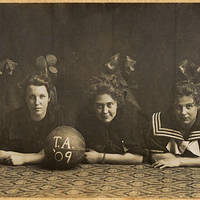 The Tualatin Academy girl's basketball team. The girls are, left to right, Lila McDonald, Ada Wiest, Beulah Ireland, Grace Thomas, Helen Allworth, and Florence Avery. [The girls were misidentified on the back of the photo. The correct names were found in the 1909 Pacific University Heart of Oak yearbook.]