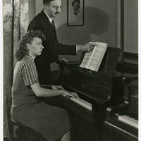 Photograph of a Pacific University professor, possibly George Williston, teaching a piano lesson.