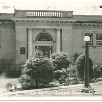 View of front entrance to Carnegie Library, before it was replaced in 1967.