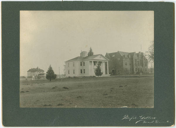 Photograph of Pacific University campus, taken before Academy Hall was destroyed by fire in 1910.