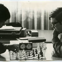 Photograph of two students playing chess. The students were part of the Chess Club at Pacific University.