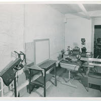 Interior view of optometry classroom in Marsh Hall before the fire.