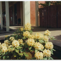 Close-up view of roses outside the University Center, also known as Washburne Hall, at Pacific University.